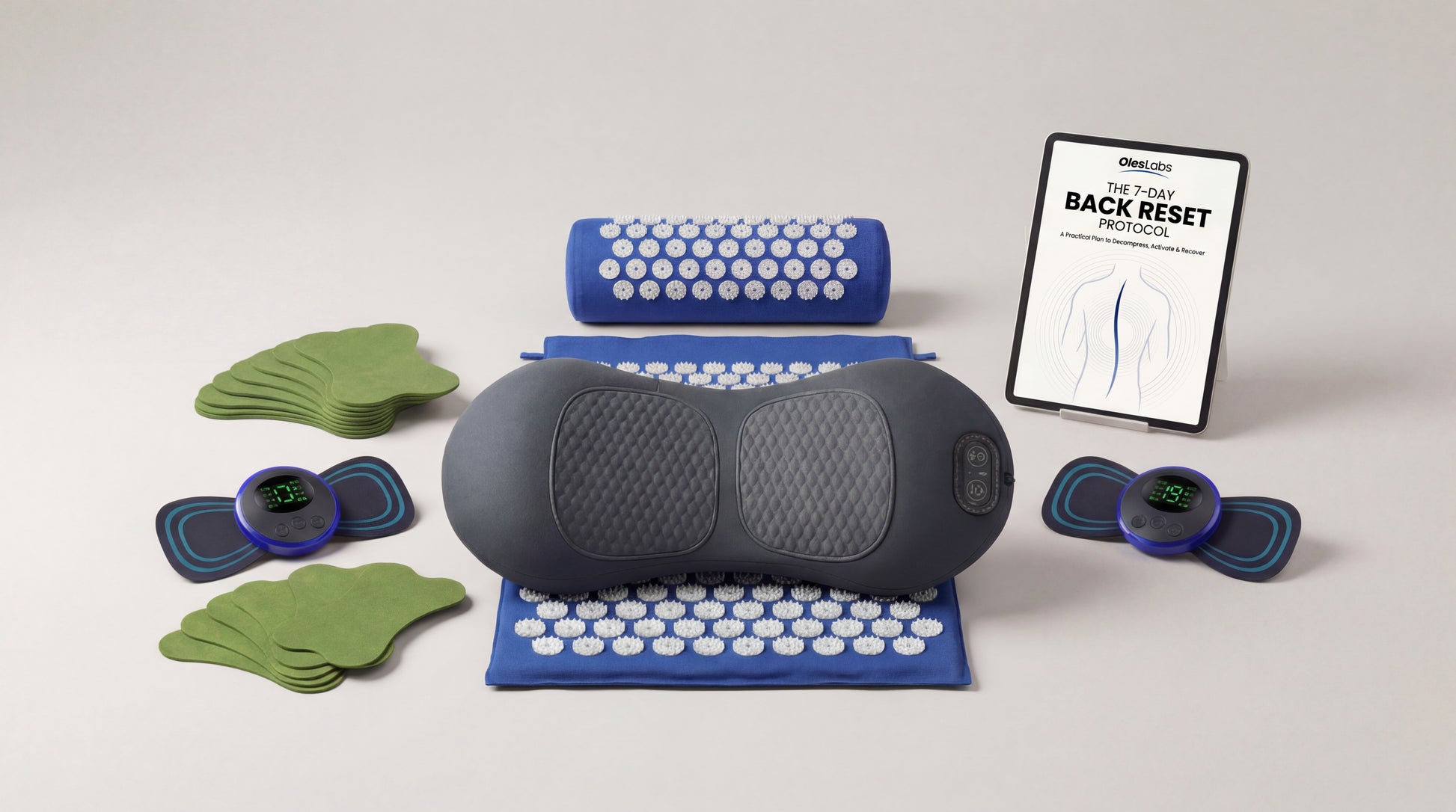 Stretching, deep vibration, and therapeutic heat work together to release tension at the muscle level instead of just masking discomfort.